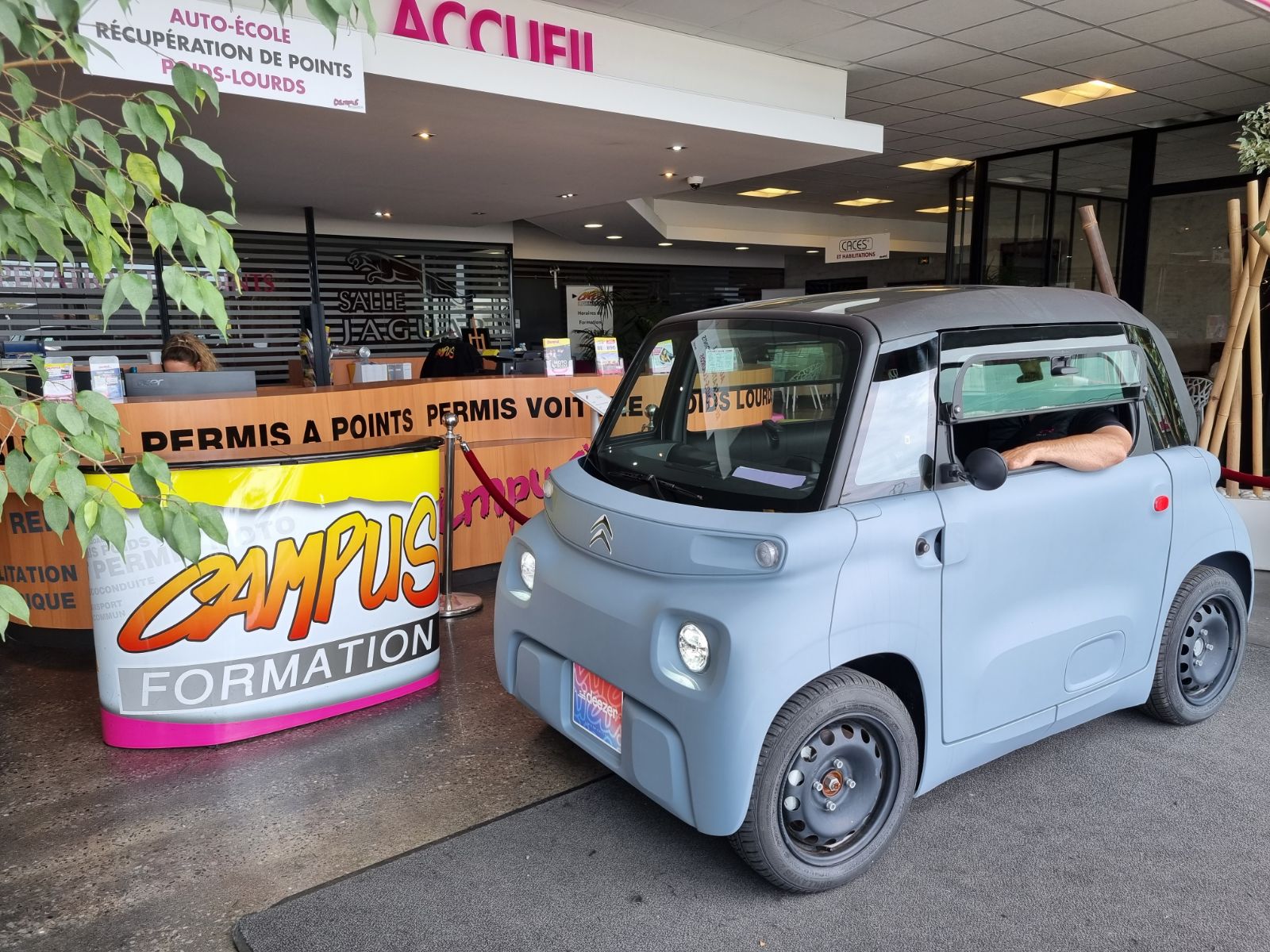Nous vous présentons la petite nouvelle de CAMPUS qui va vous permettre d’apprendre à conduire dès 14 ans : la Citroën AMI 100% électrique.